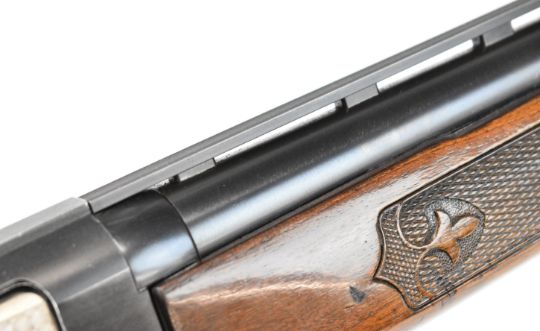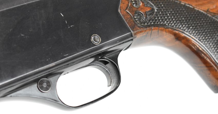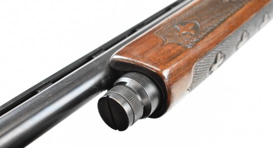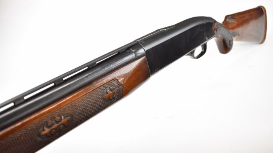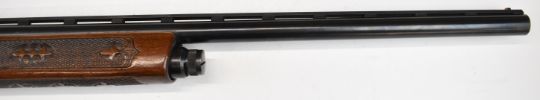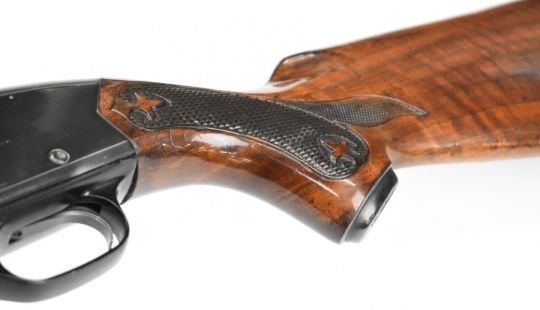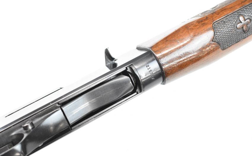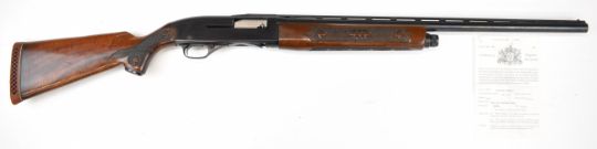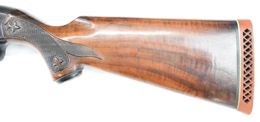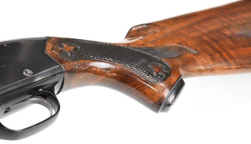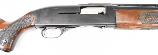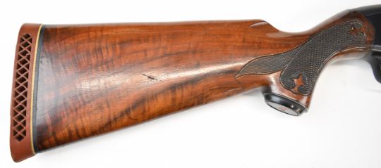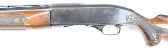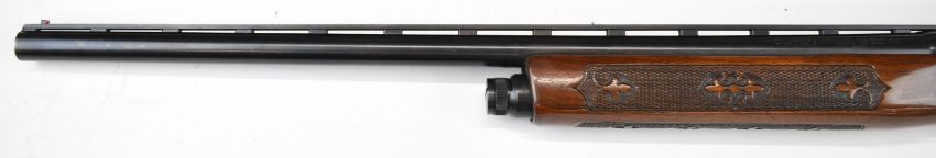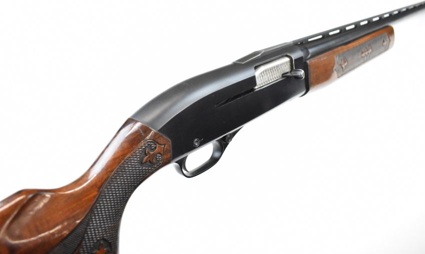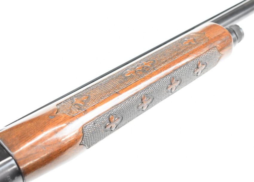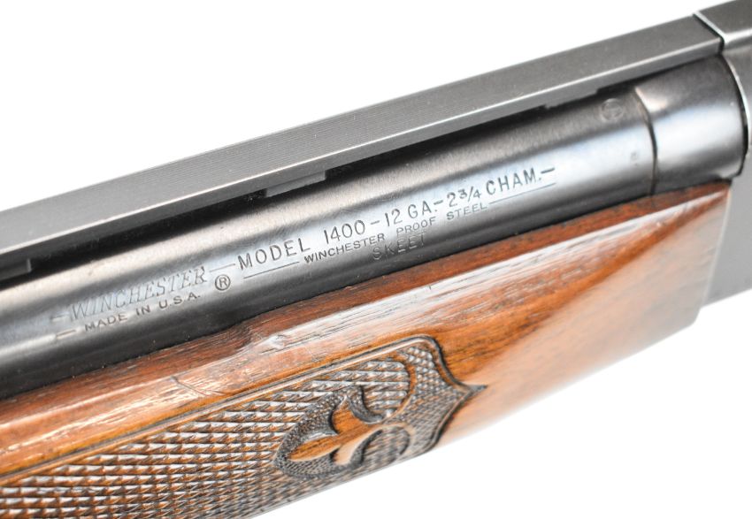 Winchester 1400 Skeet 12 bore 3-shot semi-automatic shotgun with ornately carved and chequered semi-pistol grip and forend and 26.5 inch barrel choked cylinder, overall length 118.5cm, length of pull 35.5cm, serial number 215787, with certificate of magazine restriction. PLEASE NOTE THAT A VALID RELEVANT SHOTGUN CERTIFICATE IS REQUIRED TO VIEW OR PURCHASE THIS LOT AND FOR ALL SHOTGUNS OR RIFLES. PLEASE ENSURE YOU HAVE THE RELEVANT CERTIFICATE BEFORE BIDDING.