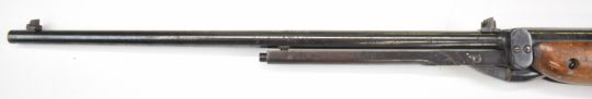 Webley Mark 3 .22 under-lever air rifle with plaque inset to the stock, semi-pistol grip and adjustable sights, serial number 47157. IF YOU REQUIRE POSTAGE THEN PLEASE NOTE THAT ALL POST-1939 AIR WEAPONS CAN ONLY BE SENT TO A REGISTERED FIREARMS DEALER AND NOT TO A HOME ADDRESS