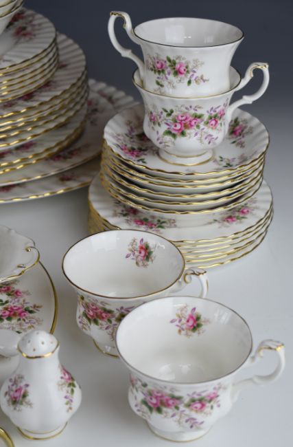 Royal Albert dinner and tea ware decorated in the Lavender Rose pattern, approximately fifty four pieces