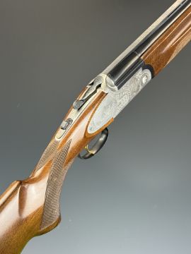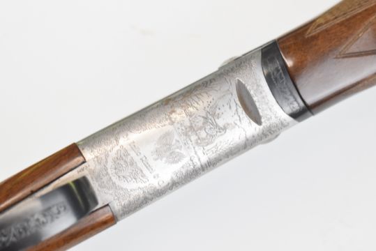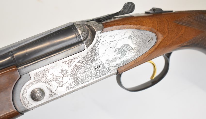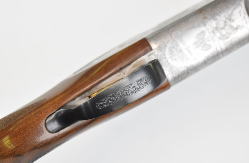 Rizzini 12 bore over and under ejector shotgun with engraved scenes of birds to the sidelock plates and underside, engraved trigger guard, top plate and thumb lever, chequered semi-pistol grip and forend, single trigger, vented top and central ribs and 27.5 inch multi-choke barrels, overall length 115cm, length of pull 37cm, serial number 93286. PLEASE NOTE THAT A VALID RELEVANT SHOTGUN CERTIFICATE IS REQUIRED TO VIEW OR PURCHASE THIS LOT AND FOR ALL SHOTGUNS OR RIFLES. PLEASE ENSURE YOU HAVE THE RELEVANT CERTIFICATE BEFORE BIDDING.