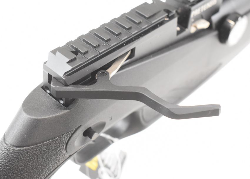 Reximex Pretensis .177 PCP air rifle with composite stock, textured semi-pistol grip, 14 shot magazine, adjustable butt plate, comb and trigger and scope rail, serial number 629-H23HK-4586, in original box with hand tags and accessories. IF YOU REQUIRE POSTAGE THEN PLEASE NOTE THAT ALL POST-1939 AIR WEAPONS CAN ONLY BE SENT TO A REGISTERED FIREARMS DEALER AND NOT TO A HOME ADDRESS