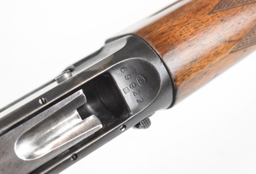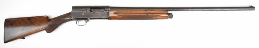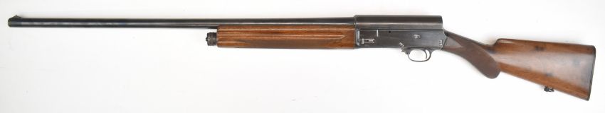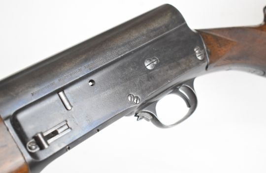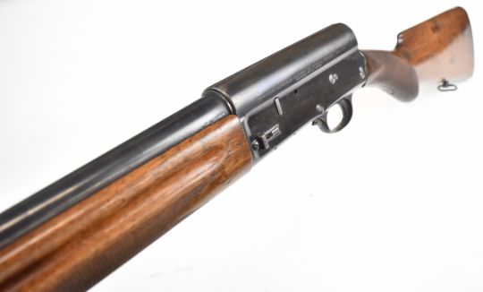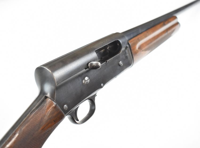 Browning A5 12 bore 3-shot semi-automatic shotgun with chequered semi-pistol grip and forend and 29.5 inch barrel choked ¾, overall length 124cm, length of pull 35.5cm, serial number 69922. PLEASE NOTE THAT A VALID RELEVANT SHOTGUN CERTIFICATE IS REQUIRED TO VIEW OR PURCHASE THIS LOT AND FOR ALL SHOTGUNS OR RIFLES. PLEASE ENSURE YOU HAVE THE RELEVANT CERTIFICATE BEFORE BIDDING.
