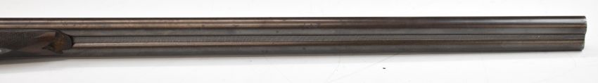 WW Greener 28 bore Grade 1 side by side shotgun with side safety, named and engraved locks, border engraved underside, trigger guard, top plate and thumb lever, chequered grip and forend, vacant cartouche to the underside of the stock, double trigger and named 27 inch Damascus barrels, overall length 119cm, length of pull 36cm, serial number 47191 in leather bound case with fitted interior and 'W W Greener Gun Rifle & Cartridge Manufacturer St Mary's Works St Mary's Square Birmingham London 68 Haymarket. Paris 8 Avenue De L'Opera. label. PLEASE NOTE THAT A VALID RELEVANT SHOTGUN CERTIFICATE IS REQUIRED TO VIEW OR PURCHASE THIS LOT AND FOR ALL SHOTGUNS OR RIFLES PLEASE ENSURE YOU HAVE THE RELEVANT CERTIFICATE BEFORE BIDDING.