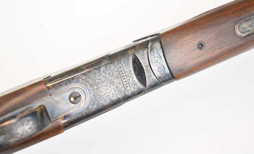 Beretta Silver Pigeon C 12 bore over and under ejector shotgun with engraved locks, underside, trigger guard, top plate and thumb lever, chequered semi-pistol grip and forend, vacant cartouche to the underside of the stock, vented top rib, single trigger and 28 inch barrels, overall length 115.5cm, length of pull 36.5cm, serial number R51021S. PLEASE NOTE THAT A VALID RELEVANT SHOTGUN CERTIFICATE IS REQUIRED TO VIEW OR PURCHASE THIS LOT AND FOR ALL SHOTGUNS OR RIFLES. PLEASE ENSURE YOU HAVE THE RELEVANT CERTIFICATE BEFORE BIDDING.