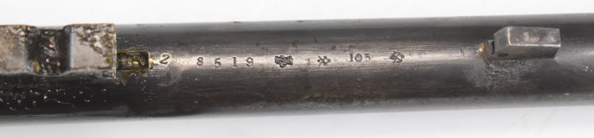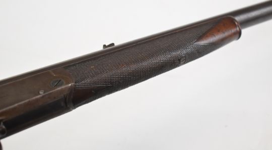 John Dickson & Son .360 No.5 or .380 hammer action rook & rabbit rifle with push-forwards underlever, chequered semi-pistol grip and forend, horn grip cap, folding leaf sights and 25 inch barrel engraved 'John Dickson & Son 63 Princes St Edinburgh', overall length 103cm.