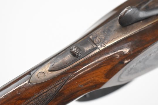 Zabala 12 bore side by side sidelock shotgun with engraved locks, underside, top plate, thumb lever and fences, chequered semi-pistol grip and forend, raised cheek piece, double trigger and named 28 inch barrels choked ¾, overall length 114.5cm, length of pull 37cm, serial number 45636. PLEASE NOTE THAT A VALID RELEVANT SHOTGUN CERTIFICATE IS REQUIRED TO VIEW OR PURCHASE THIS LOT AND FOR ALL SHOTGUNS OR RIFLES. PLEASE ENSURE YOU HAVE THE RELEVANT CERTIFICATE BEFORE BIDDING.
