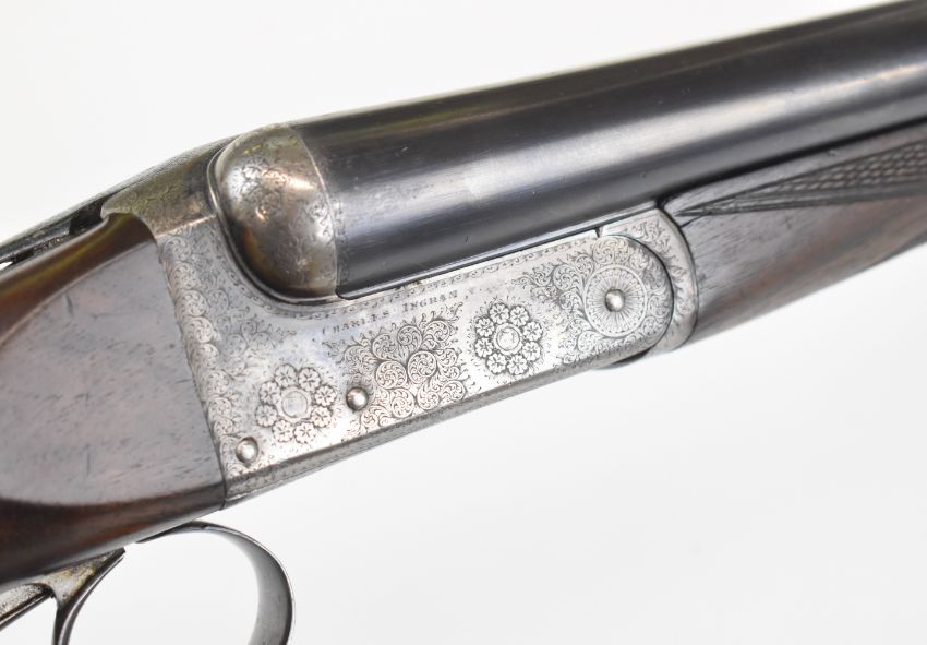 Charles Ingram of Glasgow 12 bore side by side ejector shotgun with named and engraved locks, engraved trigger guard, underside, top plate, thumb lever and fences, chequered grip and forend, carved teardrop to the wrist, double trigger and named 28 inch barrels choked ¾ and cylinder, overall length 112cm, length of pull 36.5cm, serial number 5555, in Brady of Halesowen case with 'Gallyon & Sons Ltd Gun & Cartridge Makers 66 Bridge Street Cambridge' plaque. PLEASE NOTE THAT A VALID RELEVANT SHOTGUN CERTIFICATE IS REQUIRED TO VIEW OR PURCHASE THIS LOT AND FOR ALL SHOTGUNS OR RIFLES. PLEASE ENSURE YOU HAVE THE RELEVANT CERTIFICATE BEFORE BIDDING.
