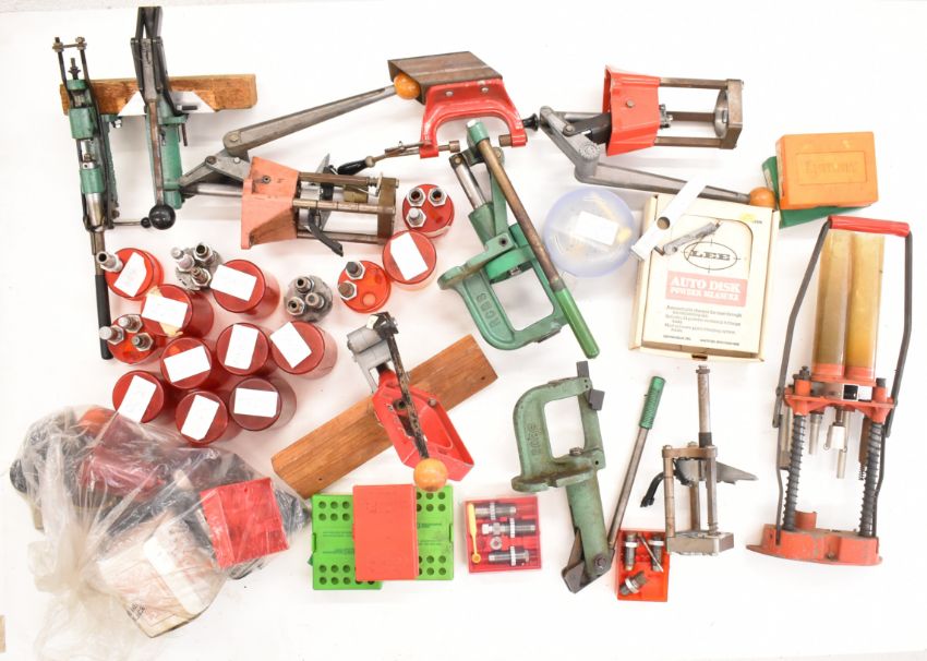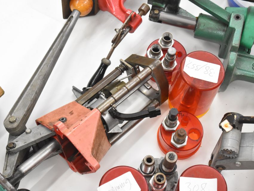 A collection of shotgun and rifle re-loading equipment including Lee and RCBS presses and dies to suit .22 Hornet, .243, .303, .308, .260, .38/357, .45-70, .223, .457, 6.5x55, 6mm etc.
