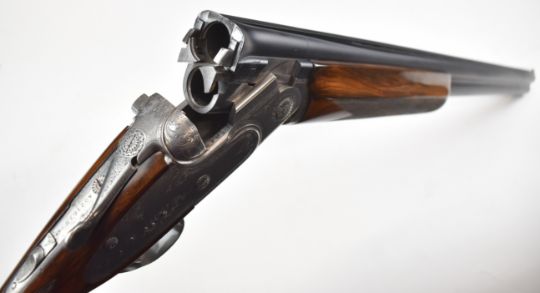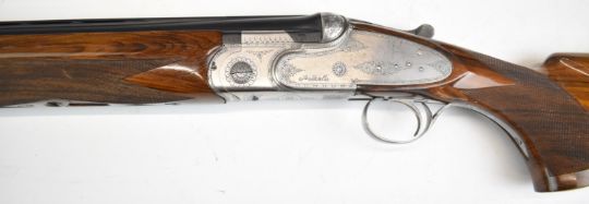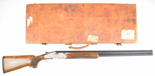 Beretta SO4 12 bore over and under ejector shotgun with engraved locks, underside, trigger guard, top plate and thumb lever, chequered semi-pistol grip and forend, single trigger, vented top rib and 30 and 28 inch barrels, length of pull 36cm, serial number A02163B, in fitted faux leather case. PLEASE NOTE THAT A VALID RELEVANT SHOTGUN CERTIFICATE IS REQUIRED TO VIEW OR PURCHASE THIS LOT AND FOR ALL SHOTGUNS OR RIFLES. PLEASE ENSURE YOU HAVE THE RELEVANT CERTIFICATE BEFORE BIDDING.