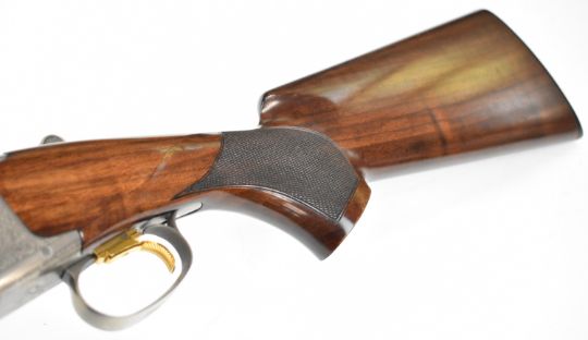 Browning B525 12 bore over and under ejector shotgun with engraved scenes of birds to the locks and underside, engraved thumb lever, chequered semi-pistol grip and forend, adjustable single trigger, vented top and central ribs and 30 inch multi-choke barrels, overall length 121cm, length of pull 38cm, serial number 63934MR. PLEASE NOTE THAT A VALID RELEVANT SHOTGUN CERTIFICATE IS REQUIRED TO VIEW OR PURCHASE THIS LOT AND FOR ALL SHOTGUNS OR RIFLES. PLEASE ENSURE YOU HAVE THE RELEVANT CERTIFICATE BEFORE BIDDING.