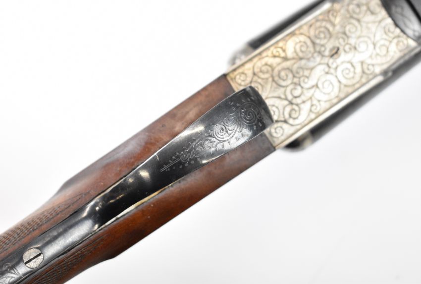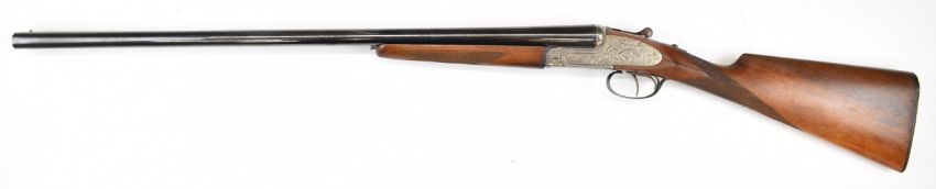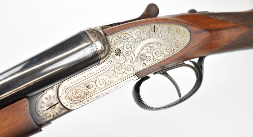 Gorosabel 12 bore side by side sidelock ejector shotgun with engraved locks, underside, trigger guard, top plate, thumb lever and fences, chequered grip and forend, double trigger and named 27.5 inch barrels choked cylinder, overall length 112.5cm, length of pull 36.5cm, serial number 92014, in Brady of Halesowen leather and canvas bound case. PLEASE NOTE THAT A VALID RELEVANT SHOTGUN CERTIFICATE IS REQUIRED TO VIEW OR PURCHASE THIS LOT AND FOR ALL SHOTGUNS OR RIFLES. PLEASE ENSURE YOU HAVE THE RELEVANT CERTIFICATE BEFORE BIDDING.