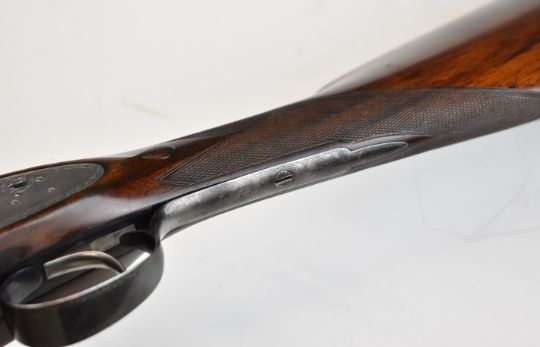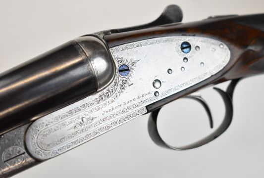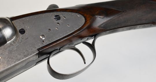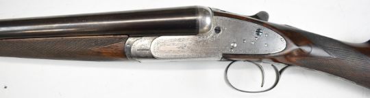 Joseph Lang & Son 12 bore sidelock side by side ejector shotgun with named and engraved locks, engraved underside, trigger guard, top plate, thumb lever and fences, chequered grip and forend, carved teardrop to the wrist, engraved cartouche to the underside of the stock, single trigger and 28 inch barrels choked ¾ and improved cylinder, overall length 114.5cm, length of pull 37cm, serial number 14552, in fitted canvas and leather case with 'William & Son Gun & Rifle Makers 14 Mount Street London W1' label. PLEASE NOTE THAT A VALID RELEVANT SHOTGUN CERTIFICATE IS REQUIRED TO VIEW OR PURCHASE THIS LOT AND FOR ALL SHOTGUNS OR RIFLES PLEASE ENSURE YOU HAVE THE RELEVANT CERTIFICATE BEFORE BIDDING.