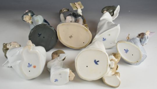Seven Lladro and one Nao figure including Geisha, tallest 36cm