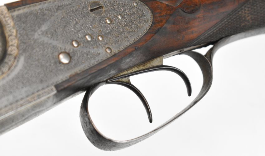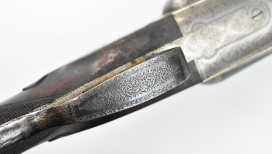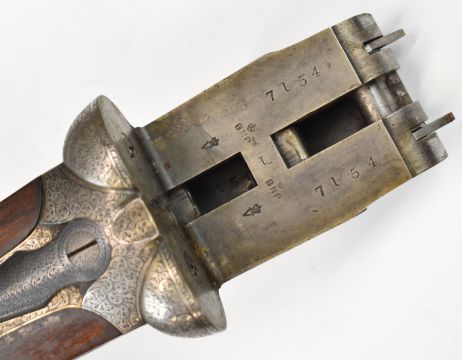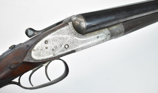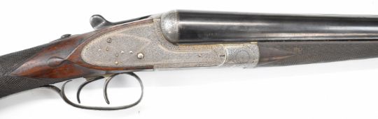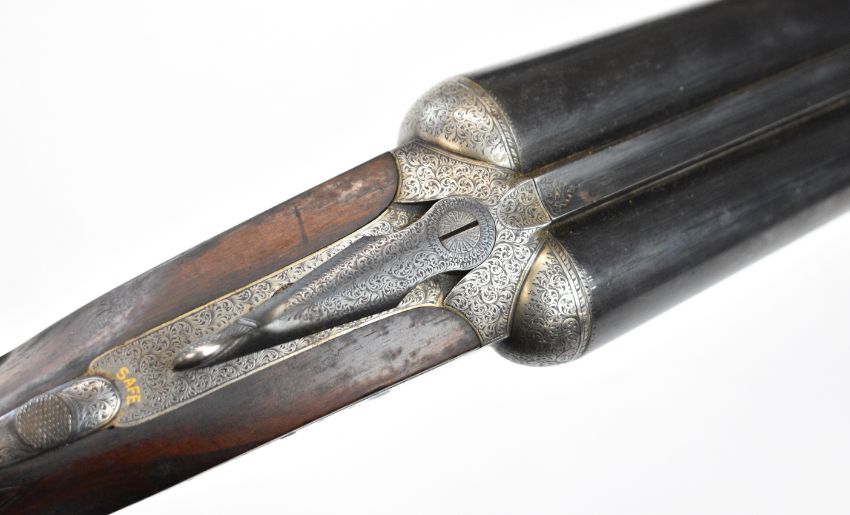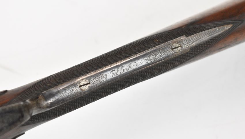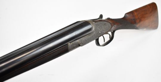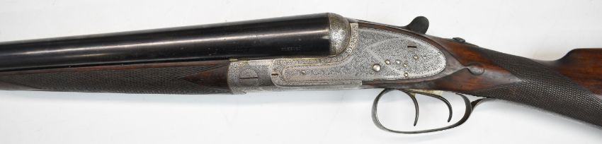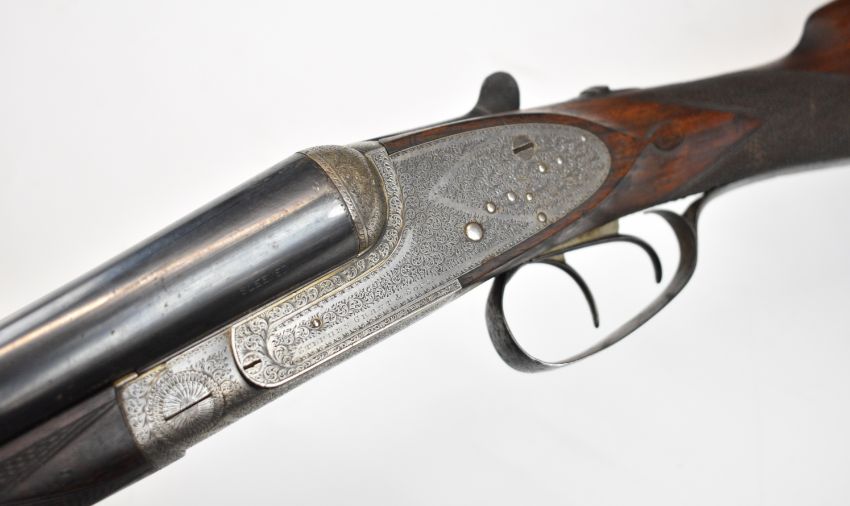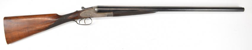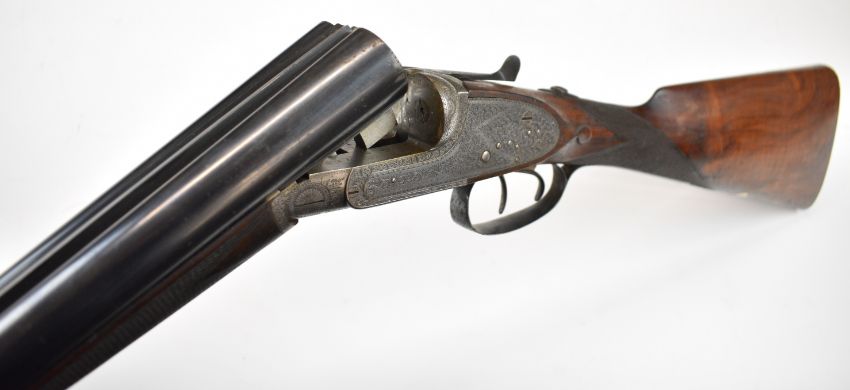 Stephen Grant & Sons 12 bore sidelock side by side ejector shotgun with scrolling engraving to the named locks, underside, trigger guard, top plate, thumb lever and fences, chequered grip and forend, carved teardrop to the wrist, vacant cartouche to the underside of the stock, double trigger and 26 inch barrels choked improved cylinder and ½, overall length 109cm, length of pull 36cm, serial number 7154. PLEASE NOTE THAT A VALID RELEVANT SHOTGUN CERTIFICATE IS REQUIRED TO VIEW OR PURCHASE THIS LOT AND FOR ALL SHOTGUNS OR RIFLES. PLEASE ENSURE YOU HAVE THE RELEVANT CERTIFICATE BEFORE BIDDING.