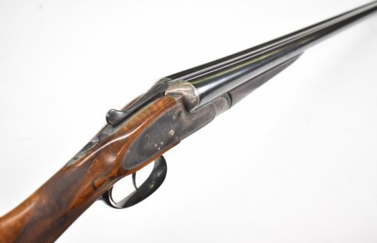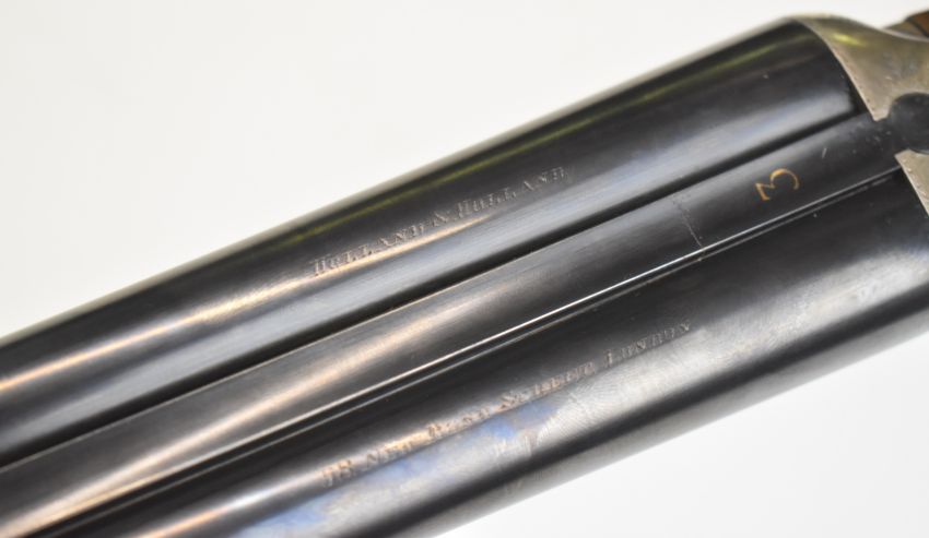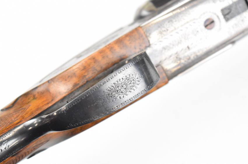 Holland & Holland 16 bore side by side sidelock ejector shotgun with fine scrolling engraving to the named locks, underside, trigger guard, top plate, thumb lever and fences, chequered grip and forend, carved teardrop to the wrist, engraved cartouche to the underside of the stock, double trigger and named 28 inch barrels, overall length 115cm, length of pull 37.5cm, serial number 29693. PLEASE NOTE THAT A VALID RELEVANT SHOTGUN CERTIFICATE IS REQUIRED TO VIEW OR PURCHASE THIS LOT AND FOR ALL SHOTGUNS OR RIFLES PLEASE ENSURE YOU HAVE THE RELEVANT CERTIFICATE BEFORE BIDDING.