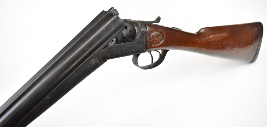 J Blanche & Son 20 bore side by side shotgun with named and engraved locks, engraved underside, trigger guard, top plate, thumb lever and fences, double trigger and named 28 inch barrels choked ¾ and cylinder, overall length 112.5cm, length of pull 36cm, serial number 6054. PLEASE NOTE THAT A VALID RELEVANT SHOTGUN CERTIFICATE IS REQUIRED TO VIEW OR PURCHASE THIS LOT AND FOR ALL SHOTGUNS OR RIFLES. PLEASE ENSURE YOU HAVE THE RELEVANT CERTIFICATE BEFORE BIDDING.