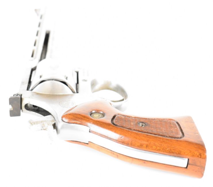 Deactivated Taurus .44 six-shot revolver with monogram inset to the chequered grips and 8.25 inch barrel, overall length 38cm, serial number NA860116, with de-activation certificate dated 08/09/2025.