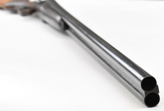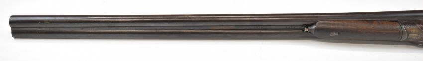 Belgian 12 bore side by side hammer action shotgun with engraved locks, hammers, underside, trigger guard, thumb lever and fences, chequered semi-pistol grip and forend, double trigger and 27.5 inch barrels choked ½, overall length 112cm, length of pull 35.5cm, serial number 9165PLEASE NOTE THAT A VALID RELEVANT SHOTGUN CERTIFICATE IS REQUIRED TO VIEW OR PURCHASE THIS LOT AND FOR ALL SHOTGUNS OR RIFLES. PLEASE ENSURE YOU HAVE THE RELEVANT CERTIFICATE BEFORE BIDDING.