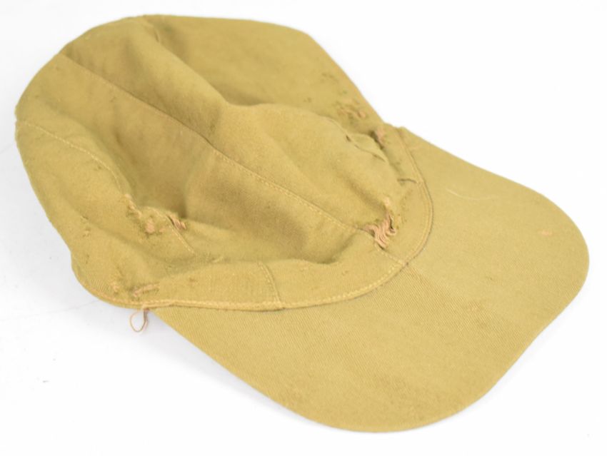 Four winter fur hats, probably German military, United States Air Force cap and Wren's hat, some insignia possibly added later.