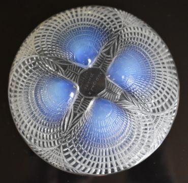 Lalique Coquilles opalescent glass bowl in the form of three clams or shells, signed 'R Lalique France No. 204' to base, 13.3cm in diameter.