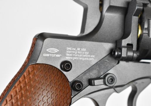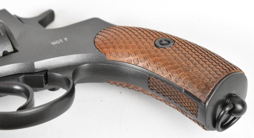 Gletcher NGT F .177 CO2 air pistol / revolver with textured faux wooden grips and fixed sights, serial number 44NGF1564, in original box with instructions. IF YOU REQUIRE POSTAGE THEN PLEASE NOTE THAT ALL POST-1939 AIR WEAPONS CAN ONLY BE SENT TO A REGISTERED FIREARMS DEALER AND NOT TO A HOME ADDRESS