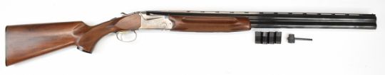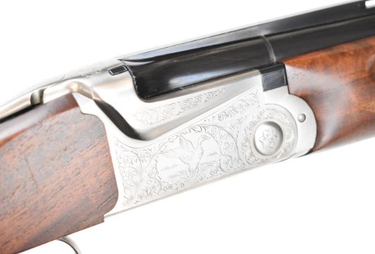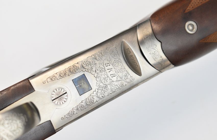 SKB 500 12 bore over and under ejector shotgun with engraved scenes of birds to the locks, engraved underside, trigger guard and thumb lever, chequered semi-pistol grip and forend, single trigger, vented top rib and 28 inch multi-choke barrels, overall length 115cm, length of pull 36cm, serial number NS89900, with four additional chokes and choke key. PLEASE NOTE THAT A VALID RELEVANT SHOTGUN CERTIFICATE IS REQUIRED TO VIEW OR PURCHASE THIS LOT AND FOR ALL SHOTGUNS OR RIFLES. PLEASE ENSURE YOU HAVE THE RELEVANT CERTIFICATE BEFORE BIDDING.