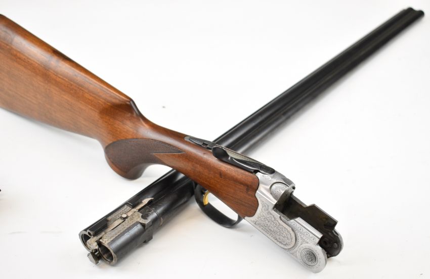 Beretta S686 Special Sporting 20 bore over and under ejector shotgun with engraved locks, underside, trigger guard, thumb lever and fences, chequered semi-pistol grip and forend, single trigger, vented top rib and 28 inch barrels choked improved cylinder, overall length 112.5cm, length of pull 34cm, serial number E87238B. PLEASE NOTE THAT A VALID RELEVANT SHOTGUN CERTIFICATE IS REQUIRED TO VIEW OR PURCHASE THIS LOT AND FOR ALL SHOTGUNS OR RIFLES. PLEASE ENSURE YOU HAVE THE RELEVANT CERTIFICATE BEFORE BIDDING.
