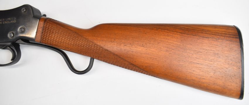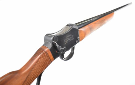 W W Greener Greener's GP Mk II Gun Martini underlever action 12 bore single barrelled shotgun with named lock, chequered grip and forend and 30 inch barrel choked ¼, overall length 118cm, length of pull 37cm, serial number G80882. PLEASE NOTE THAT A VALID RELEVANT SHOTGUN CERTIFICATE IS REQUIRED TO VIEW OR PURCHASE THIS LOT AND FOR ALL SHOTGUNS OR RIFLES. PLEASE ENSURE YOU HAVE THE RELEVANT CERTIFICATE BEFORE BIDDING.