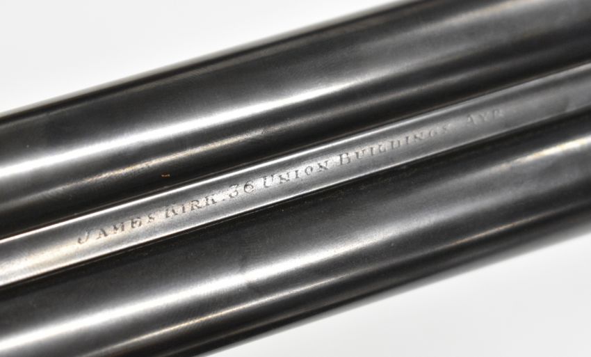 James Kirk 20 bore side by side ejector shotgun with named and engrave locks, engraved underside, trigger guard, top plate, thumb lever and fences, chequered grip and forend, double trigger and named 26 inch barrels choked full and cylinder, overall length 108.5cm, length of pull 37cm, serial number 315 in fitted leather and canvas bound case with 'J Venables & Son Gun and Rifle Makers Oxford Patronised by Royalty Established A Century' label. PLEASE NOTE THAT A VALID RELEVANT SHOTGUN CERTIFICATE IS REQUIRED TO VIEW OR PURCHASE THIS LOT AND FOR ALL SHOTGUNS OR RIFLES PLEASE ENSURE YOU HAVE THE RELEVANT CERTIFICATE BEFORE BIDDING.