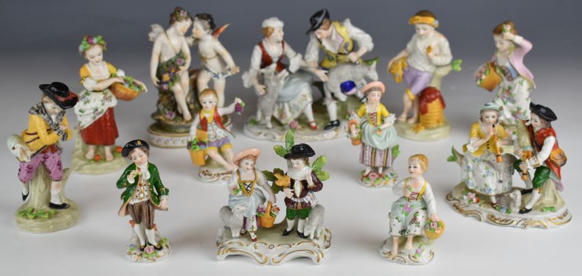 Twelve Sitzendorf / Naples figures including several pairs, tallest 14cm