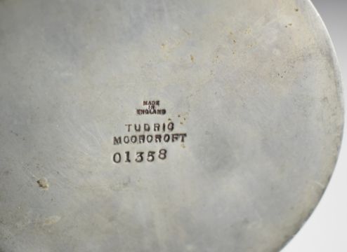Matched / very close pair of William Moorcroft floral vases decorated in the Moonlit Blue pattern, with Tudric Pewter mounts and impressed 'Tudric Moorcroft, 01358' to base, H19cm