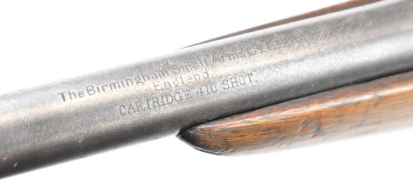 BSA .410 bolt action service shotgun with named and monogrammed 23 inch barrel, overall length 107.5, length of pull 34.5cm, serial number 5867. PLEASE NOTE THAT A VALID RELEVANT SHOTGUN CERTIFICATE IS REQUIRED TO VIEW OR PURCHASE THIS LOT AND FOR ALL SHOTGUNS OR RIFLES. PLEASE ENSURE YOU HAVE THE RELEVANT CERTIFICATE BEFORE BIDDING.