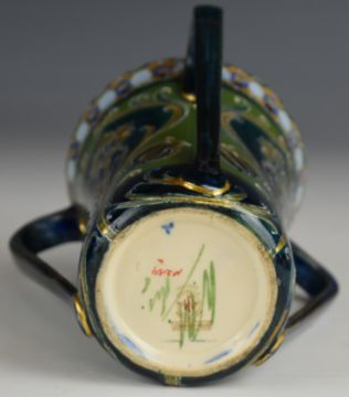 William Moorcroft Macintyre Florian Ware green and gold tyg decorated with tulips, with signed and printed marks to base with 'M2159' model number