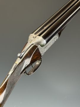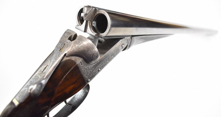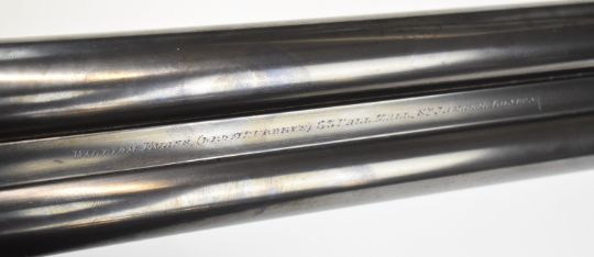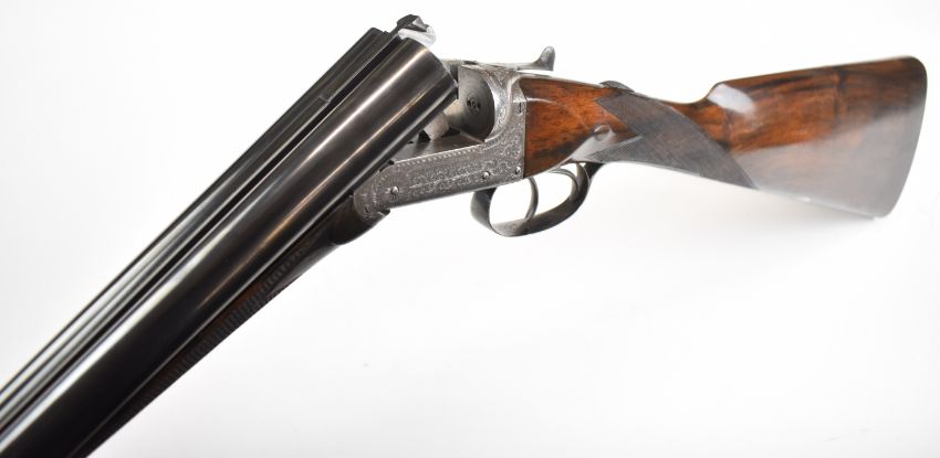 William Evans 12 bore side by side ejector shotgun with named and engraved locks, scrolling engraving to the underside, trigger guard, top plate, thumb lever and fences, chequered grip and forend, carved teardrop to the wrist, vacant cartouche to the underside of the stock, double trigger and named 30 inch barrels choked cylinder and ¾, overall length 120.5cm, length of pull 39.5cm, serial number 8666. PLEASE NOTE THAT A VALID RELEVANT SHOTGUN CERTIFICATE IS REQUIRED TO VIEW OR PURCHASE THIS LOT AND FOR ALL SHOTGUNS OR RIFLES PLEASE ENSURE YOU HAVE THE RELEVANT CERTIFICATE BEFORE BIDDING.