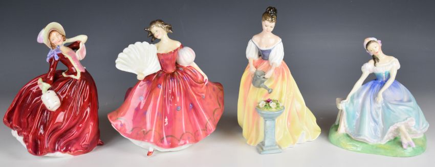 Eight Royal Doulton figurines including Belle, Giselle, Gail, Lady Sarah Jane, etc tallest 26cm