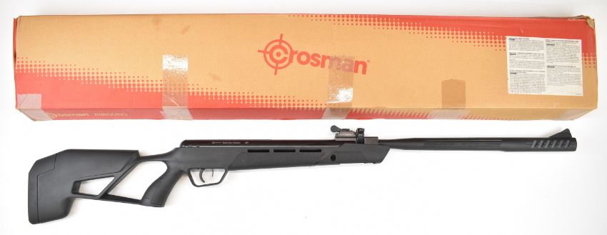 Crosman Multi-Shot Mission Model 6-CMM2SXS .22 air rifle with composite skeleton stock, textured grip, 10-shot magazine, adjustable sights, 4x32 scope and sound moderated barrel, serial number 823X01750, in original box with instructions. IF YOU REQUIRE POSTAGE THEN PLEASE NOTE THAT ALL POST-1939 AIR WEAPONS CAN ONLY BE SENT TO A REGISTERED FIREARMS DEALER AND NOT TO A HOME ADDRESS