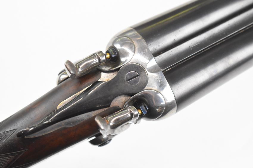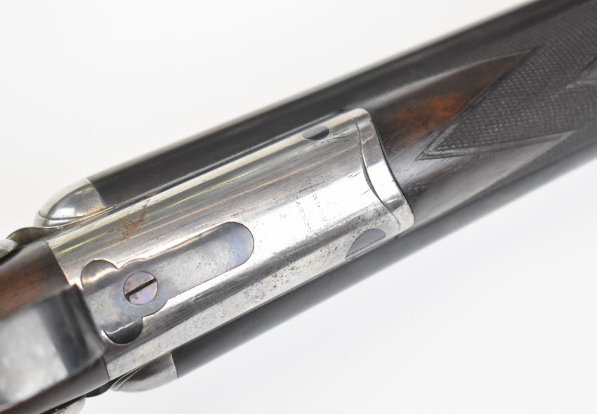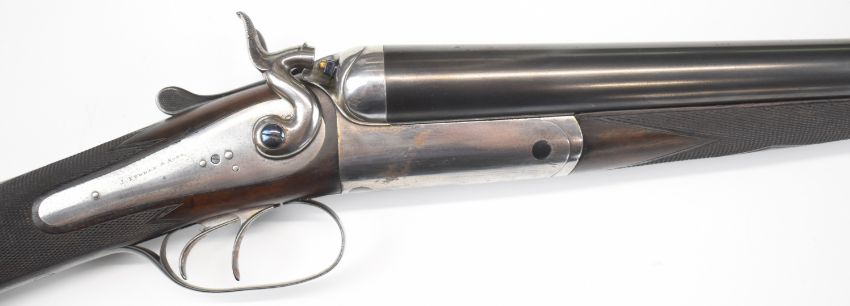 James Purdey & Sons 12 bore side by side hammer action shotgun with named locks, chequered grip and forend, double trigger and named 29 inch barrels choked cylinder and improved cylinder, overall length 117cm, length of pull 37.5cm, serial number 13179. PLEASE NOTE THAT A VALID RELEVANT SHOTGUN CERTIFICATE IS REQUIRED TO VIEW OR PURCHASE THIS LOT AND FOR ALL SHOTGUNS OR RIFLES PLEASE ENSURE YOU HAVE THE RELEVANT CERTIFICATE BEFORE BIDDING.