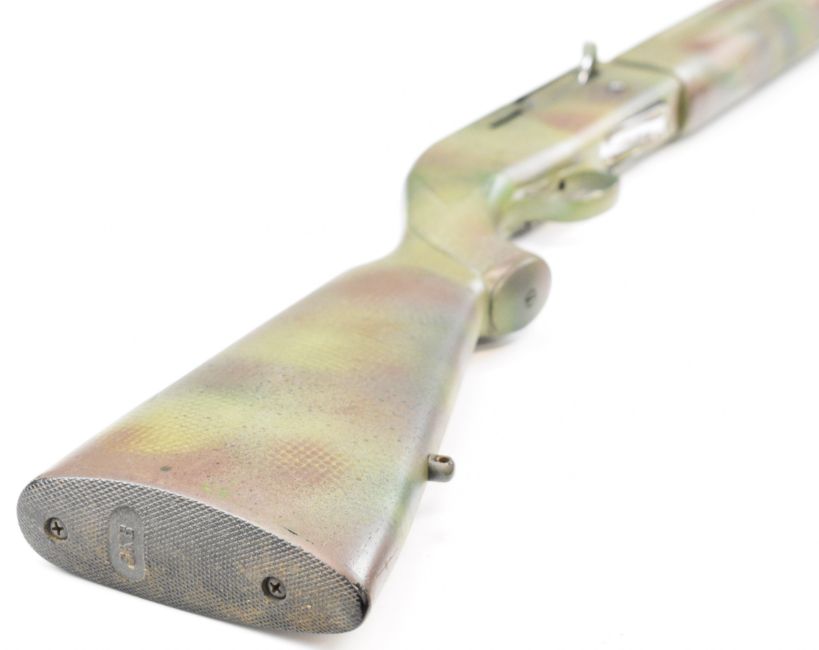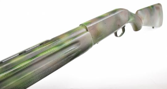 BSA 220A 12 bore 3-shot semi-automatic shotgun with composite stock, camouflage finish, chequered semi-pistol grip and forend, sling mounts, vented rib and 28 inch barrel choked ½, overall length 121cm, length of pull 35.5cm, serial number S245497. PLEASE NOTE THAT A VALID RELEVANT SHOTGUN CERTIFICATE IS REQUIRED TO VIEW OR PURCHASE THIS LOT AND FOR ALL SHOTGUNS OR RIFLES. PLEASE ENSURE YOU HAVE THE RELEVANT CERTIFICATE BEFORE BIDDING.