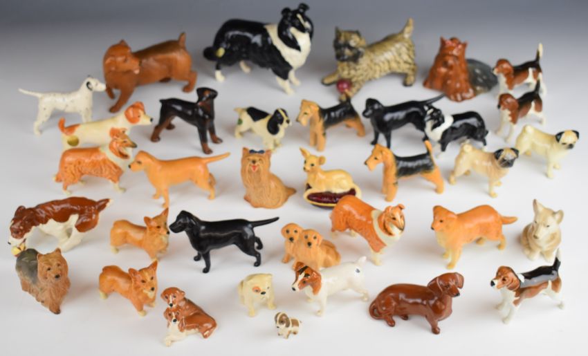 Approximately thirty six Beswick and Royal Doulton dog figures including Norfolk Terrier, Collie, Spaniel, Labrador, tallest 12cm
