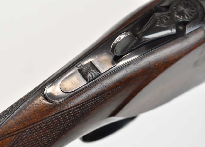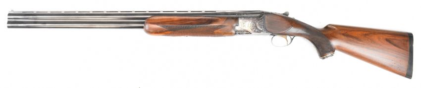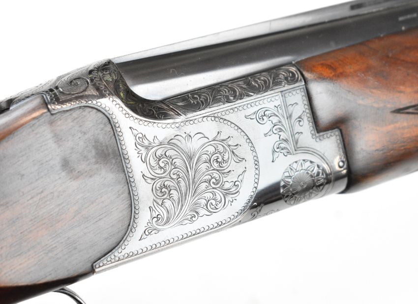 Miroku 12 bore over and under ejector shotgun with engraved locks, underside, trigger guard and thumb lever, chequered semi-pistol grip and forend, single trigger, vented top rib and 26 inch barrels choked cylinder, overall length 109cm, length of pull 35.5cm, serial number 670441. PLEASE NOTE THAT A VALID RELEVANT SHOTGUN CERTIFICATE IS REQUIRED TO VIEW OR PURCHASE THIS LOT AND FOR ALL SHOTGUNS OR RIFLES. PLEASE ENSURE YOU HAVE THE RELEVANT CERTIFICATE BEFORE BIDDING.