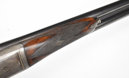 W J Jeffery & Co Ltd 12 bore side by side shotgun with named and engraved locks, engraved underside, trigger guard, top plate, thumb lever and fences, chequered semi-pistol grip and forend, double trigger and named 28 inch barrels choked ¼ and full, overall length 112.5cm, length of pull 36cm, serial number 37894. PLEASE NOTE THAT A VALID RELEVANT SHOTGUN CERTIFICATE IS REQUIRED TO VIEW OR PURCHASE THIS LOT AND FOR ALL SHOTGUNS OR RIFLES. PLEASE ENSURE YOU HAVE THE RELEVANT CERTIFICATE BEFORE BIDDING.