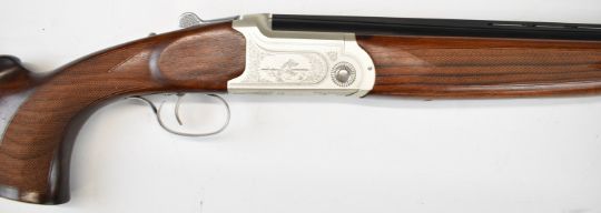 Yildiz SPZ ME 20 bore over and under ejector shotgun with engraved scenes of birds to the locks and underside, engraved trigger guard and thumb lever, chequered semi-pistol grip and forend, adjustable comb, single trigger, vented top and central ribs and 28 inch multi-choke barrels, overall length 114cm, length of pull 36cm, serial number 15738. PLEASE NOTE THAT A VALID RELEVANT SHOTGUN CERTIFICATE IS REQUIRED TO VIEW OR PURCHASE THIS LOT AND FOR ALL SHOTGUNS OR RIFLES. PLEASE ENSURE YOU HAVE THE RELEVANT CERTIFICATE BEFORE BIDDING.