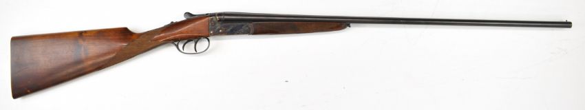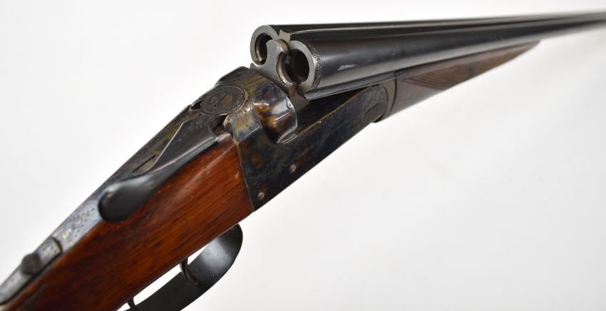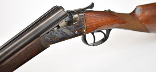 AYA .410 side by side shotgun with named and engraved locks, border engraved underside, trigger guard, top plate, thumb lever and fences, chequered grip and forend, double trigger and named 27 inch barrels, overall length 111.5cm, length of pull 37.5cm, serial number 546692. PLEASE NOTE THAT A VALID RELEVANT SHOTGUN CERTIFICATE IS REQUIRED TO VIEW OR PURCHASE THIS LOT AND FOR ALL SHOTGUNS OR RIFLES. PLEASE ENSURE YOU HAVE THE RELEVANT CERTIFICATE BEFORE BIDDING.