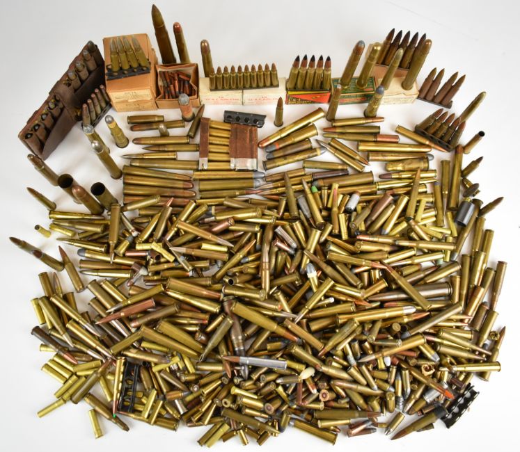 A large collection of live and inert collector's rifle, pistol and revolver cartridges including .470, .577/450, .44-50, 303, No.2 Express, .404, .500-465, .500 Special, .475 No.2 Jeffery etc. PLEASE NOTE THAT A VALID RELEVANT RFD CERTIFICATE IS REQUIRED TO VIEW OR PURCHASE THIS LOT AND FOR ALL SHOTGUNS, RIFLES OR AMMUNITION PLEASE ENSURE YOU HAVE THE RELEVANT CERTIFICATE BEFORE BIDDING. PLEASE ALSO NOTE THAT AMMUNITION CANNOT BE SENT IN THE POST.