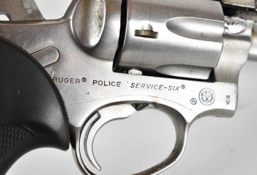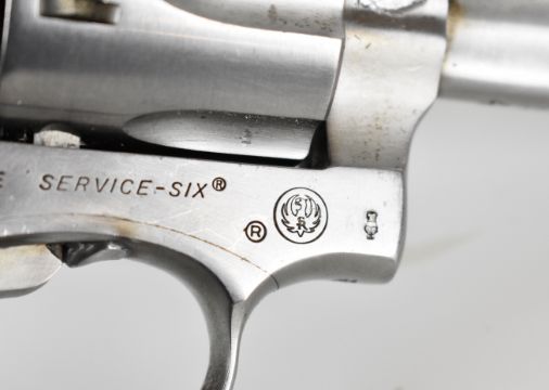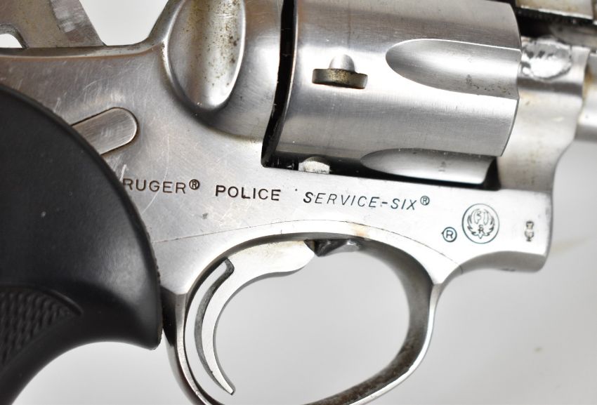 Deactivated Ruger Police Service Six .357 six-shot single action revolver with monogram inset to the chequered rubber grips and named 4 inch barrel, overall length 27cm, serial number 160-61583, with de-activation certificate dated 08/09/2025.