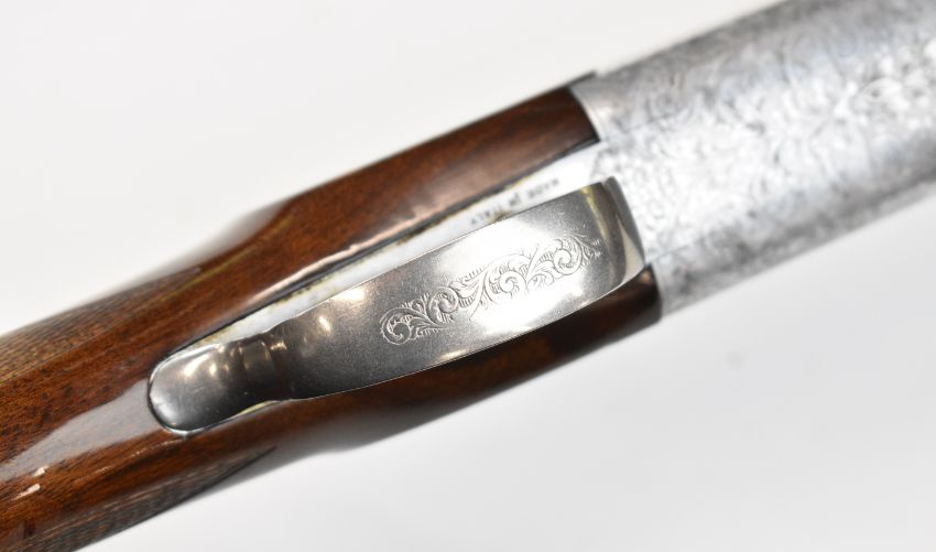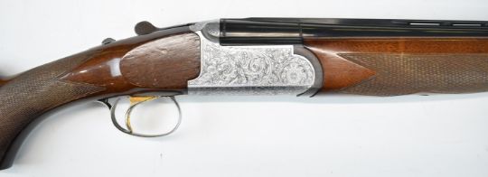 Browning Medallist Sporter 12 bore over and under ejector shotgun with named and ornately engraved locks, underside, trigger guard, top plate and thumb lever, chequered semi-pistol grip and forend, single trigger, vented top and central ribs and 29.75 inch multi-choke barrels, overall length 121cm, length of pull 37cm, serial number 49677. PLEASE NOTE THAT A VALID RELEVANT SHOTGUN CERTIFICATE IS REQUIRED TO VIEW OR PURCHASE THIS LOT AND FOR ALL SHOTGUNS OR RIFLES. PLEASE ENSURE YOU HAVE THE RELEVANT CERTIFICATE BEFORE BIDDING.