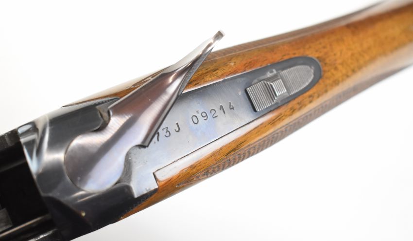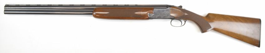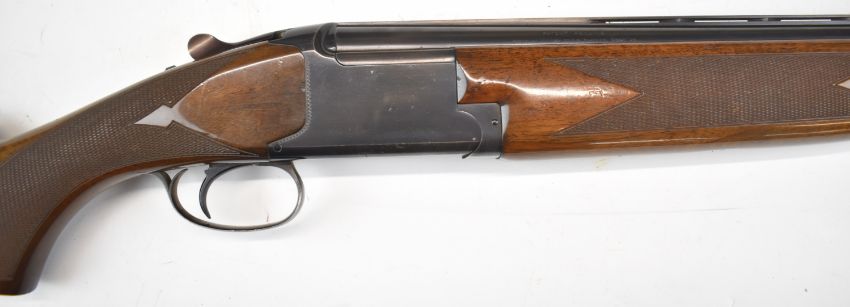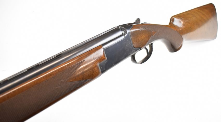 Browning B26 12 bore over and under ejector shotgun with chequered semi-pistol grip and forend, vented top rib, single trigger and 28 inch barrels choked ¼ and ¾, overall length 114cm, length of pull 36.5cm, serial number  73J09214. PLEASE NOTE THAT A VALID RELEVANT SHOTGUN CERTIFICATE IS REQUIRED TO VIEW OR PURCHASE THIS LOT AND FOR ALL SHOTGUNS OR RIFLES. PLEASE ENSURE YOU HAVE THE RELEVANT CERTIFICATE BEFORE BIDDING.
