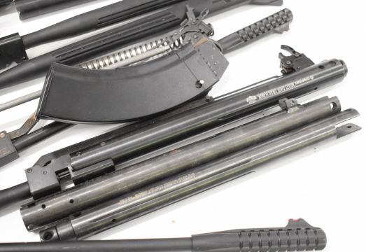 A collection of air rifles and air rifle parts including ASG TAC Repeat, Cybergun Kalashnikov AK47, Firepower MS pump-action airsoft gun etc IF YOU REQUIRE POSTAGE THEN PLEASE NOTE THAT ALL POST-1939 AIR WEAPONS CAN ONLY BE SENT TO A REGISTERED FIREARMS DEALER AND NOT TO A HOME ADDRESS
