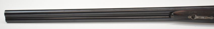 William Evans 12 bore side by side shotgun with border engraved locks, underside, trigger guard, top plate, thumb lever and fences, chequered grip and horn tipped forend, double trigger and named 30 inch barrels choked cylinder and ¾, overall length 120cm, length of pull 38.5cm, serial number 11601. PLEASE NOTE THAT A VALID RELEVANT SHOTGUN CERTIFICATE IS REQUIRED TO VIEW OR PURCHASE THIS LOT AND FOR ALL SHOTGUNS OR RIFLES PLEASE ENSURE YOU HAVE THE RELEVANT CERTIFICATE BEFORE BIDDING.