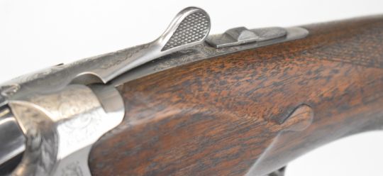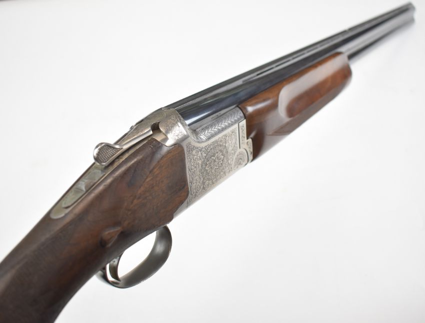 Miroku MK-70 Sport Grade 3 12 bore over and under ejector shotgun with engraved locks, thumb lever and underside, chequered semi-pistol grip and forend, carved teardrop to the wrist, single trigger, vented top rib and 30 inch multi-choke barrels, overall length 120cm, length of pull 36.5cm, serial number 62404NV. PLEASE NOTE THAT A VALID RELEVANT SHOTGUN CERTIFICATE IS REQUIRED TO VIEW OR PURCHASE THIS LOT AND FOR ALL SHOTGUNS OR RIFLES. PLEASE ENSURE YOU HAVE THE RELEVANT CERTIFICATE BEFORE BIDDING.